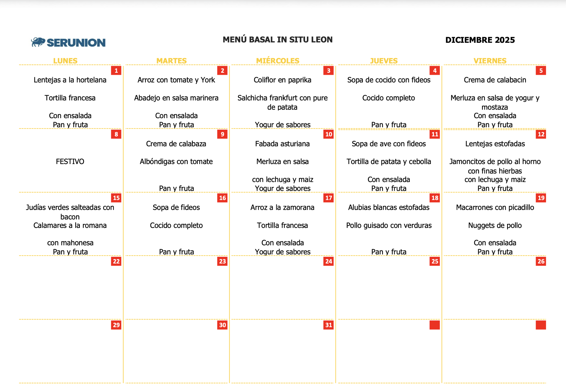 MENÚ DICIEMBRE 2025